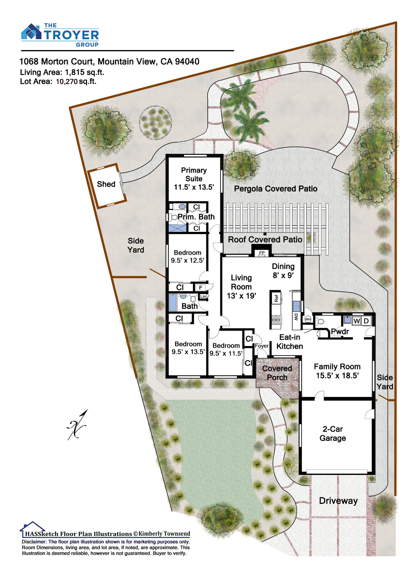 Sitting on a spacious 10,270 square foot lot, this updated ranch-style home offers gorgeous hardwood floors, a fantastic floor plan for entertaining and everyday living, a secluded bedroom wing, and a large, private backyard. The eat-in kitchen stuns with deep white quartz countertops, decorative tile backsplashes, and stainless steel appliances, and opens directly into the living/dining combination making entertaining a breeze. A comfortable family room sits at the front of the home brightened by wide windows. Three well-sized bedrooms enjoy abundant natural light, while the primary suite sits at the end of the bedroom wing with brand new carpet and an updated ensuite bath. Outside, you’ll find a lovely partially covered patio and a wide pebble stone pathway that leads through mature, drought-tolerant plantings and cacti. A classic home, located in the sought-after Gemello Park neighborhood on the edge of Mountain View and Los Altos, with access to excellent local schools.