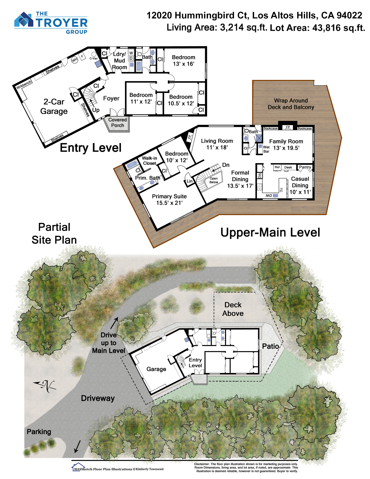 Sitting on one acre at the end of a private cul-de-sac, this spacious home offers soaring vaulted ceilings, picture windows, and a fabulous deck that wraps around the home and offers plenty of space for outdoor living and entertaining with views of the prolific surroundings. On the main level, the living room has a to-the-ceiling stone fireplace and lofty ceilings. The dining room has an upgraded wagon wheel chandelier and vaulted ceilings. The kitchen offers deep granite countertops, full-height backsplashes, and a large casual dining room with doors to the balcony. The family room offers even more living and entertaining space with built-ins and a focal-point fireplace. The primary suite opens to the balcony and sits beside a well-sized bedroom, and three additional bedrooms are privately situated on the lower level. The deck extends around the home and overlooks the lush hillside, mature trees, and the western hills. Exceptionally private, yet just minutes from downtown Los Altos, major commute routes, shopping, and dining.
