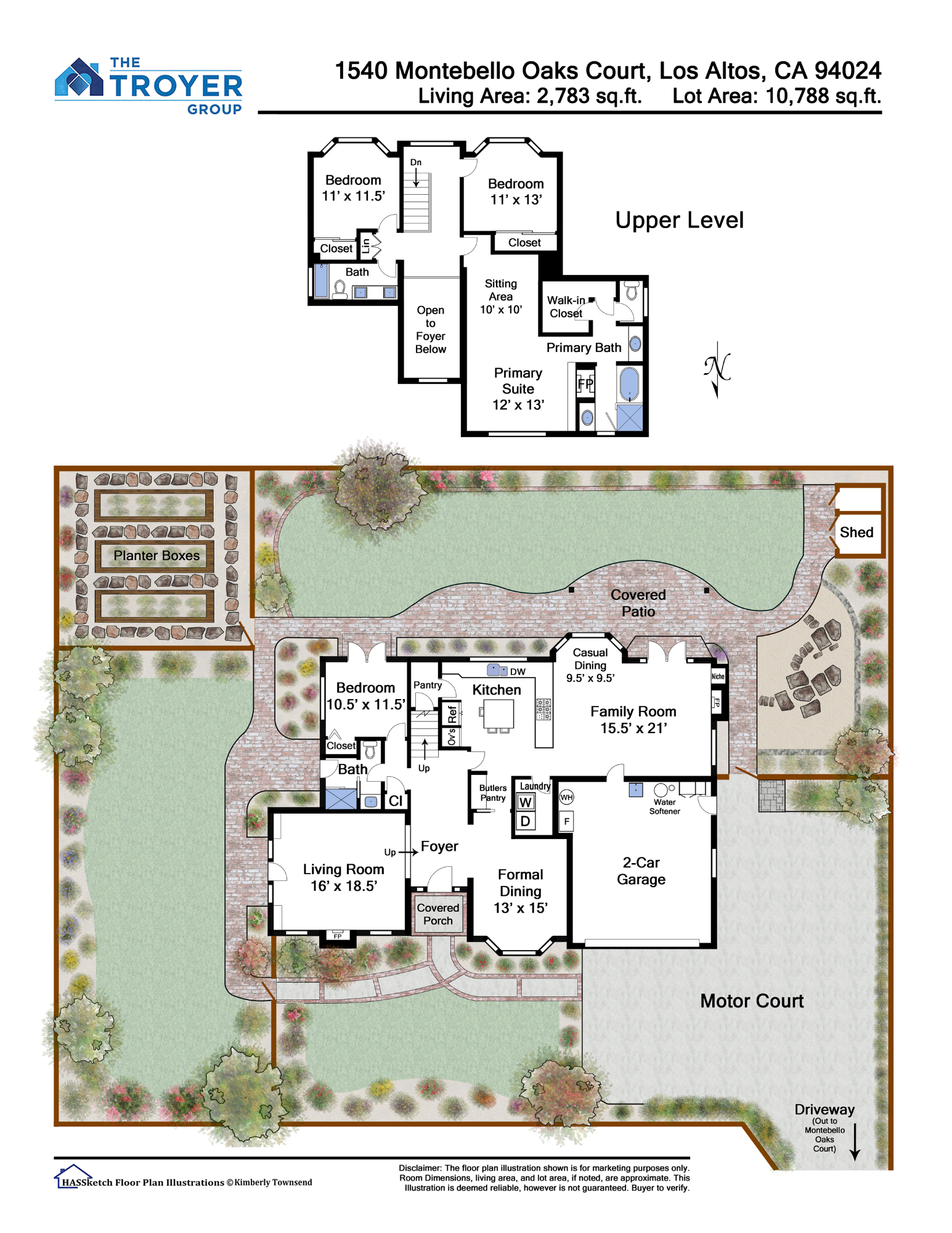 Set back from the street allowing for abundant privacy, this spacious home provides a fabulous indoor/outdoor lifestyle. On the main level, well-designed public rooms look out over lush gardens, while a light-filled bedroom, or ideal home office, has easy access to a full bathroom. Upstairs, two bedrooms enjoy expansive picture windows and large closets, and the palatial primary suite has a two-way fireplace, soaring vaulted ceilings, and a tile-appointed ensuite. The wonderful yard wraps around the home and includes two vast stretches of level lawn, a fully-fenced garden with three long raised beds, lovely brick pathways and patios, a pergola-covered dining patio, productive fruit trees, mature plantings, and tall perimeter trees for added privacy. Perfectly placed on a cul-de-sac in sought-after South Los Altos with access to excellent Los Altos schools, commute routes, and amenities.