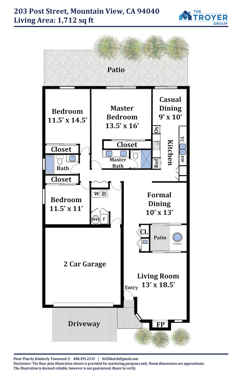 • Approximately 1,712 square feet of living space (buyer to confirm)