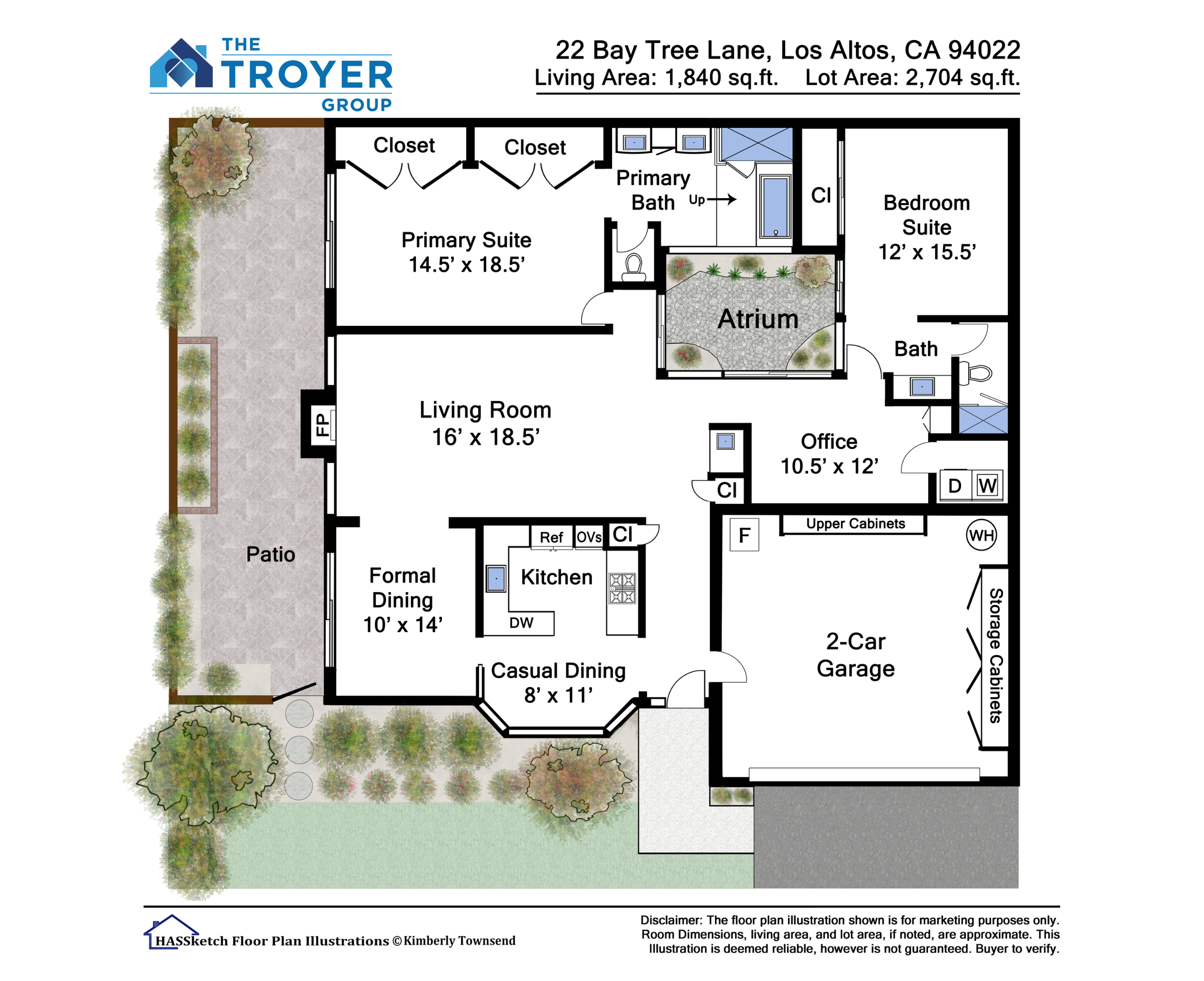 Located in the verdant Creekside Oaks Community moments from downtown, this spacious home enjoys beautiful stone finishes, a flowing floor plan, private outdoor space, and abundant natural light. The kitchen and casual dining room are illuminated by a large skylight, and have a convenient pass-through to the formal dining room for easy entertaining. The living room offers a focal-point fireplace and two glass doors to the lovely patio. The primary suite has a wall of closets, outdoor access, and a granite-appointed spa bath. The secondary bedroom suite has access to the atrium and an updated en suite. And meeting all work-from-home needs is a central office nook. The atrium has a flagstone patio and a mature Japanese maple, and the side patio is immensely private and invites relaxation and dining alfresco with a backdrop of prolific jasmine. All of this, with fabulous community amenities including two pools, bocce ball court, gardens and greenbelts, walking paths, sauna, and hot tub.