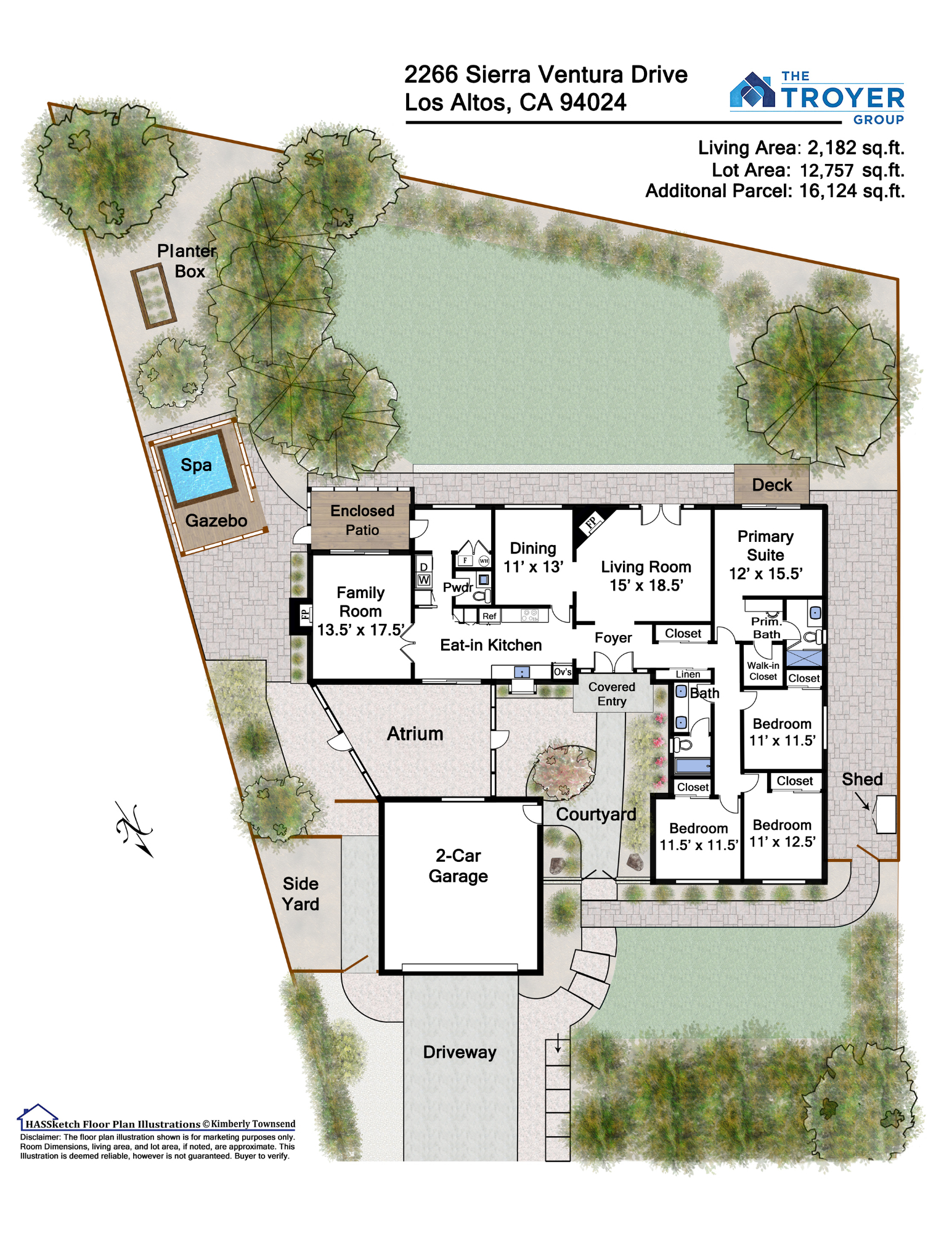 Rare .66 acre property (2 parcels) offering scenic Western Hill views, incredibly private outdoor space, and a sprawling single-level floor plan. The freshly landscaped front yard welcomes you, and then the gated entry courtyard draws you in. The sky-lit eat-in kitchen offers beautiful black quartz countertops and easy access to each of the main living spaces as well as a protected atrium. The living room has a fireplace and French doors to the large backyard, the dining room allows for large-scale dinner parties overlooking the hills, and the comfortable family room opens to an enclosed patio and the yard. The bedrooms are perfectly situated on one side of the home for added privacy, and all have expansive windows and hardwood floors. The rear yard offers a spa, substantial lawn area, tall redwood trees, and access to owned open space behind the home, all with lovely views of the hills. A special property with direct access to miles of trails at Rancho San Antonio. Cupertino schools!