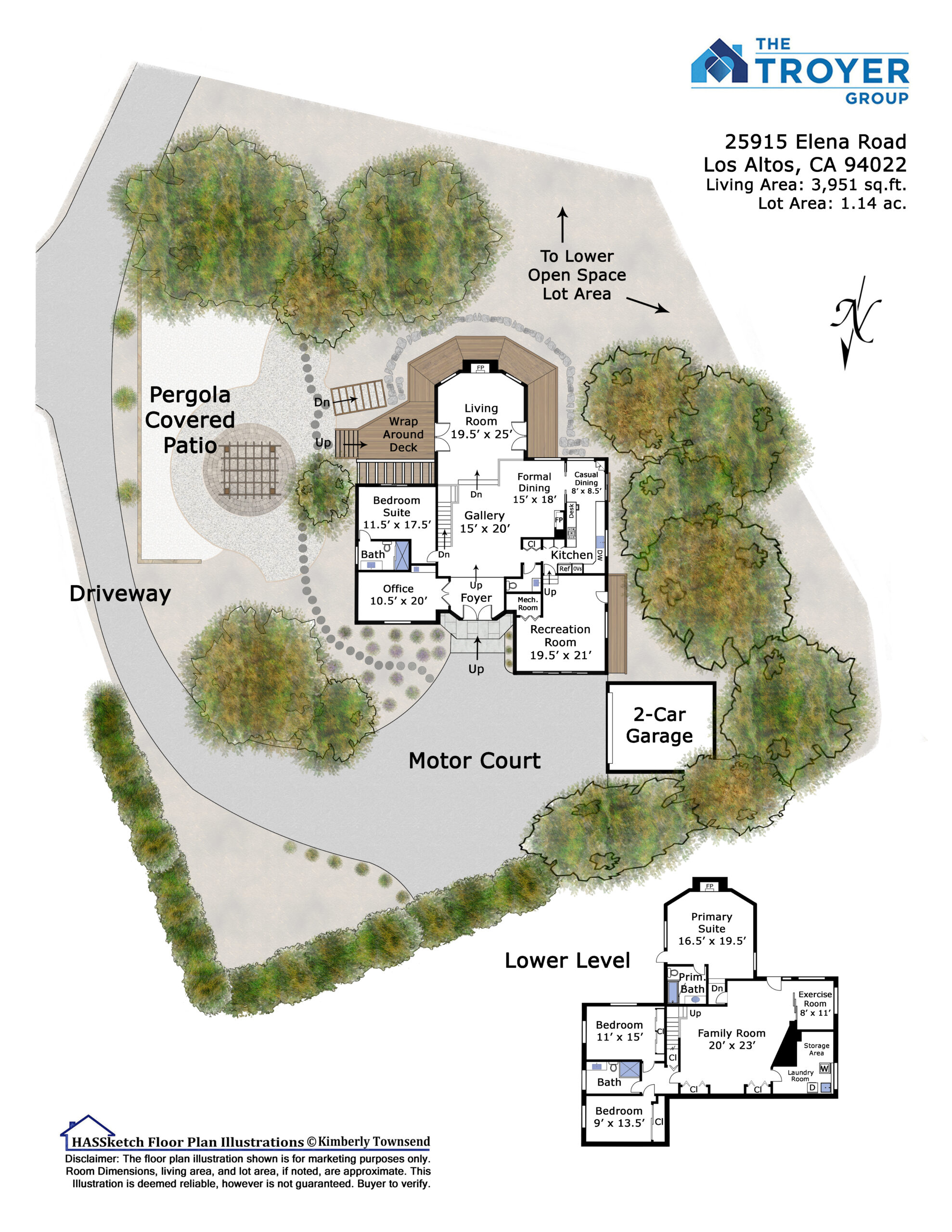 A seamless blend of traditional and contemporary design, this spacious home offers soaring ceilings, a flexible floor plan, and a lot size of 1.14 acres in prestigious Los Altos Hills with views of the Packard property. From the impressive double door entrance, to the fireside dining room, to the grand living room with access to the wraparound view deck, around every corner is a new feature to admire. The kitchen has abundant custom cabinetry, and sits open to the casual dining room with stunning hill views. The family room invites fun-filled gatherings with a wall of sliding glass doors to the outdoor space. A front-facing office meets all work-from-home needs with a convenient wet bar. The main-level primary suite features a wall of sleek built-ins and a glass door to the deck and yard. Downstairs, a fabulous recreation/media room connects the luxe secondary suite, the exercise room, and two additional bedrooms. Vast decking spans across the backside of the home offering a tranquil space to relax, entertain, and take in the gorgeous natural surroundings. And, a pergola covered patio is the ideal venue to dine alfresco overlooking the mature tree and hill views. A true retreat feeling miles away, yet just minutes from commute routes, downtown, and every amenity!