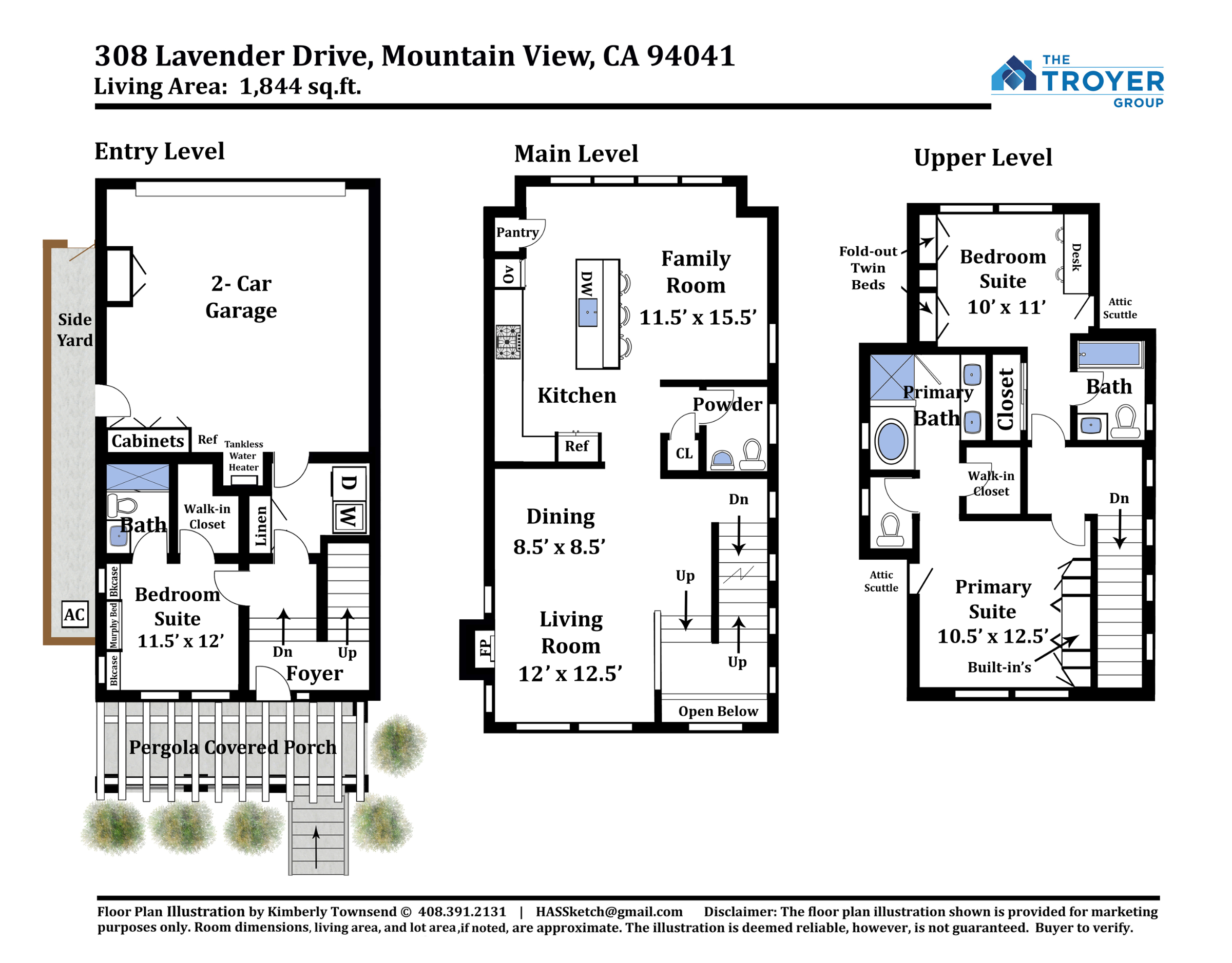 Located within the sought-after Old Mountain View neighborhood with sidewalk lined streets, excellent local parks, Landels Elementary, Stevens Creek Trail, the transit center, and all of the wonderful shops and restaurants on Castro Street steps away. Well-placed at the back of a charming community of just 39 homes with a park-like courtyard directly outside your pergola-covered front porch. Inside the extensively upgraded home, enjoy three spacious bedroom suites outfitted with substantial custom built-ins, open-concept living spaces, and a designer chef’s kitchen with abundant storage. Each room is filled with natural light via tall windows, while rich wood floors, 9-foot ceilings, and stunning stone accents create a luxurious atmosphere throughout. Plus, experience the convenience of having solar panels and an attached two-car garage with epoxy floors and a Tesla Powerwall. Truly the best of downtown living!