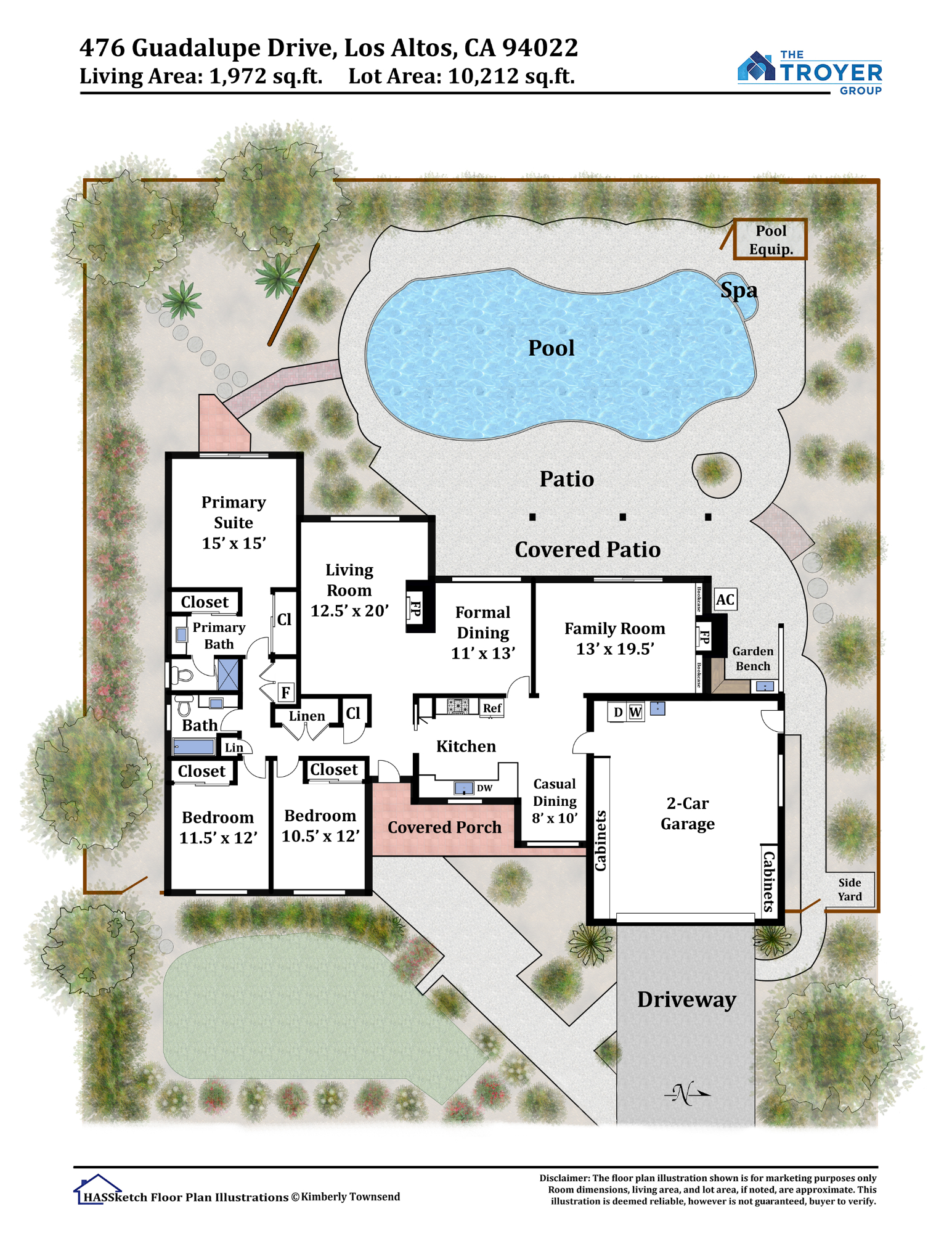 Located in one of the most sought-after neighborhoods of Los Altos, this classic ranch-style home offers wonderful living spaces to enjoy with friends and family and a fantastic yard with a sparkling pool. Starting from the first step inside, each room flows seamlessly from one to the next with wide windows bringing the outdoors in. The living room boasts gorgeous hardwood floors and a floor-to-ceiling brick fireplace and opens directly into the spacious formal dining room for easy entertaining. The kitchen is brightened by numerous front-facing windows and features stunning white quartz countertops. Two light-filled bedrooms sit at the front of the home, while the private primary suite opens to its own patio and the rear yard. Outside, a true oasis awaits with a covered patio, large pool with a vast pebblestone patio surround, and tall perimeter landscape affording an added layer of privacy. A timeless home with thoughtful updates, close to downtown and top-rated schools!