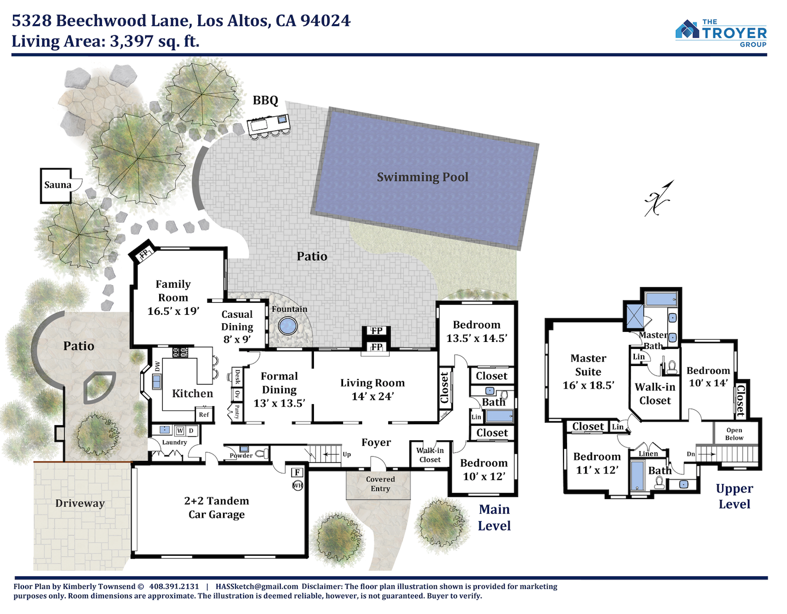 • Renovated rear grounds include natural-looking, high-end and eco-friendly synthetic lawn by OneLawn, a pool and spa with automatic cover, vast flagstone terrace, separate building with wet/dry sauna, and side yard with raised vegetable beds