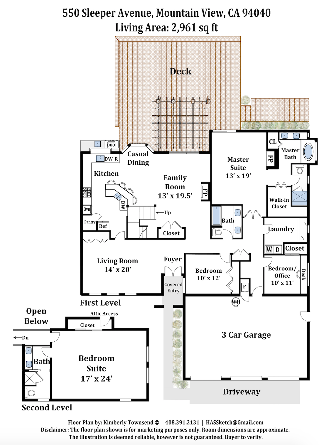 • Approximately 2,961 square feet of living space