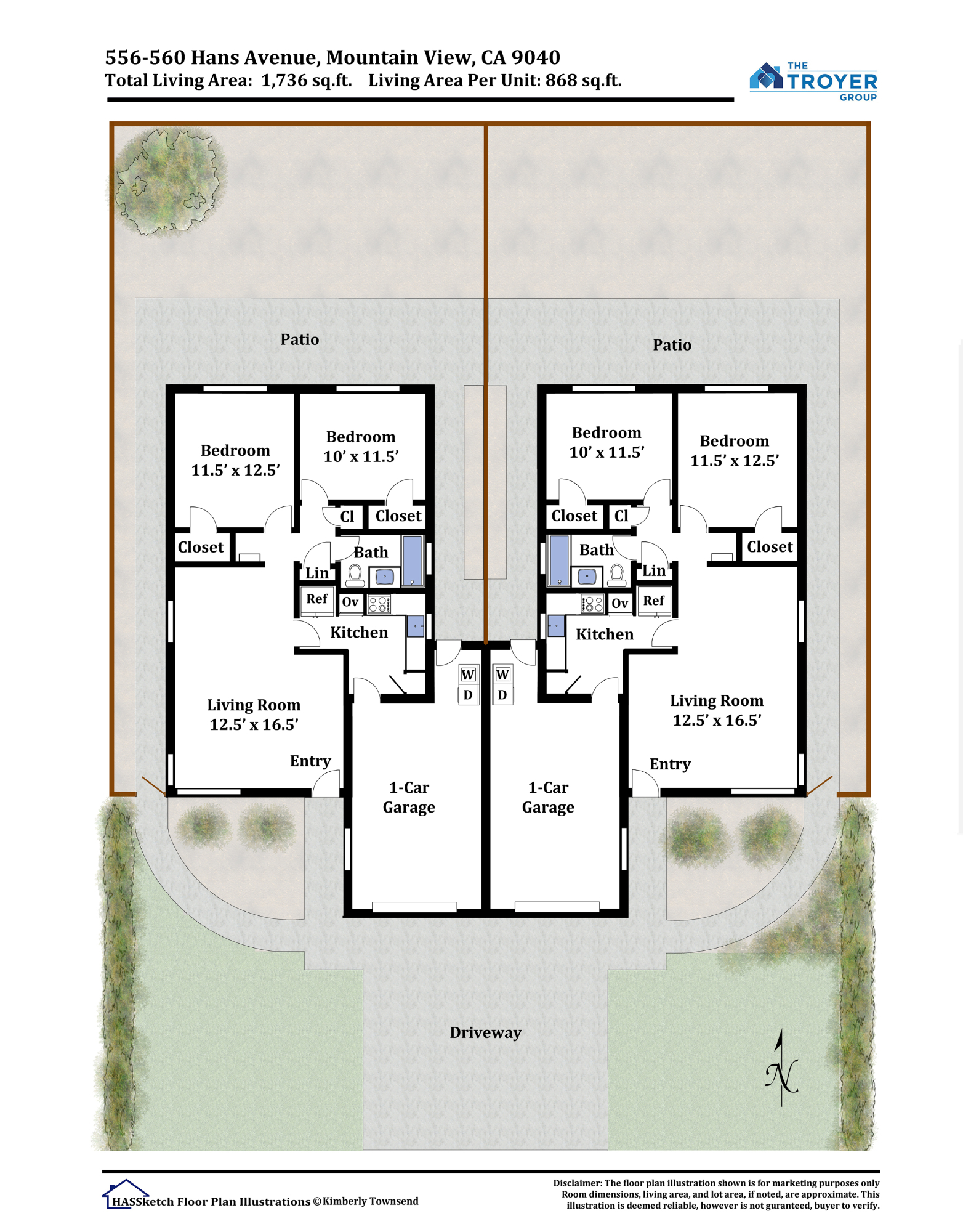 • Duplex with 2 bedroom, 1 bath units with fenced and private rear yards