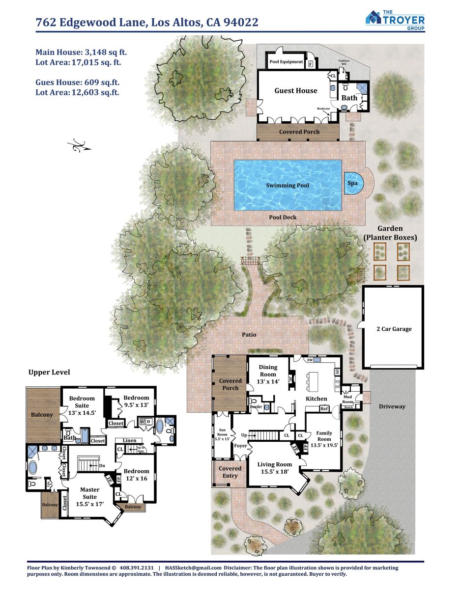 - Approximately 3,148 square feet of living space in the main home plus approximately 609 square feet in the guest house