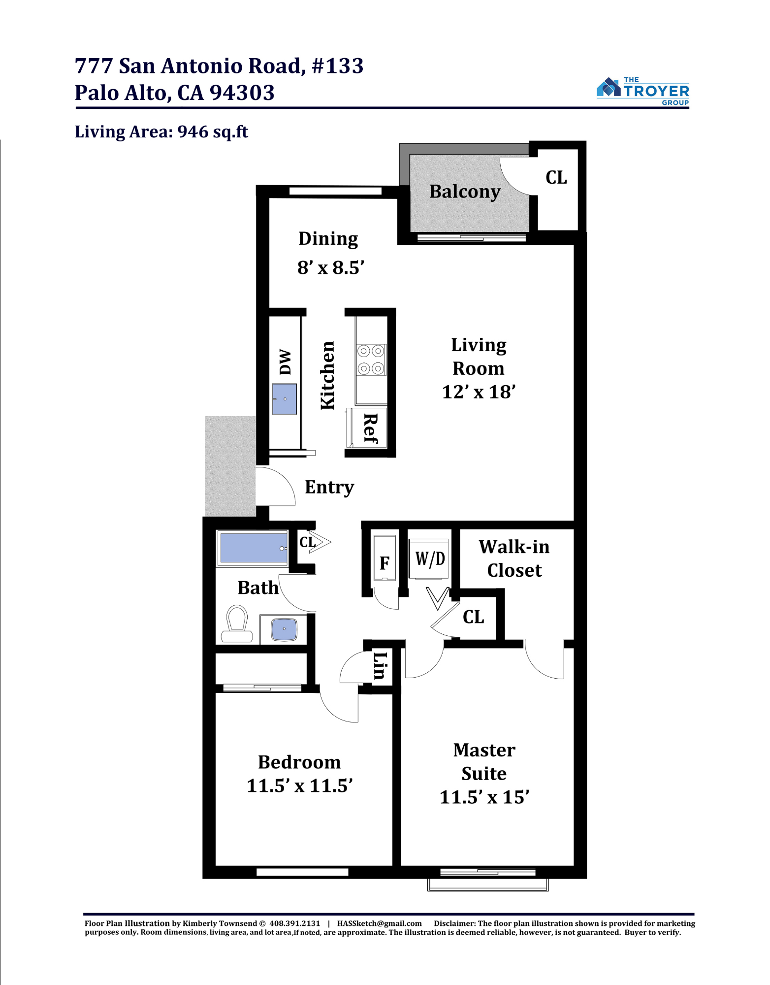 Additional features: laundry closet with stacked Kenmore washer and dryer; three hallway closets, one lined with shelves