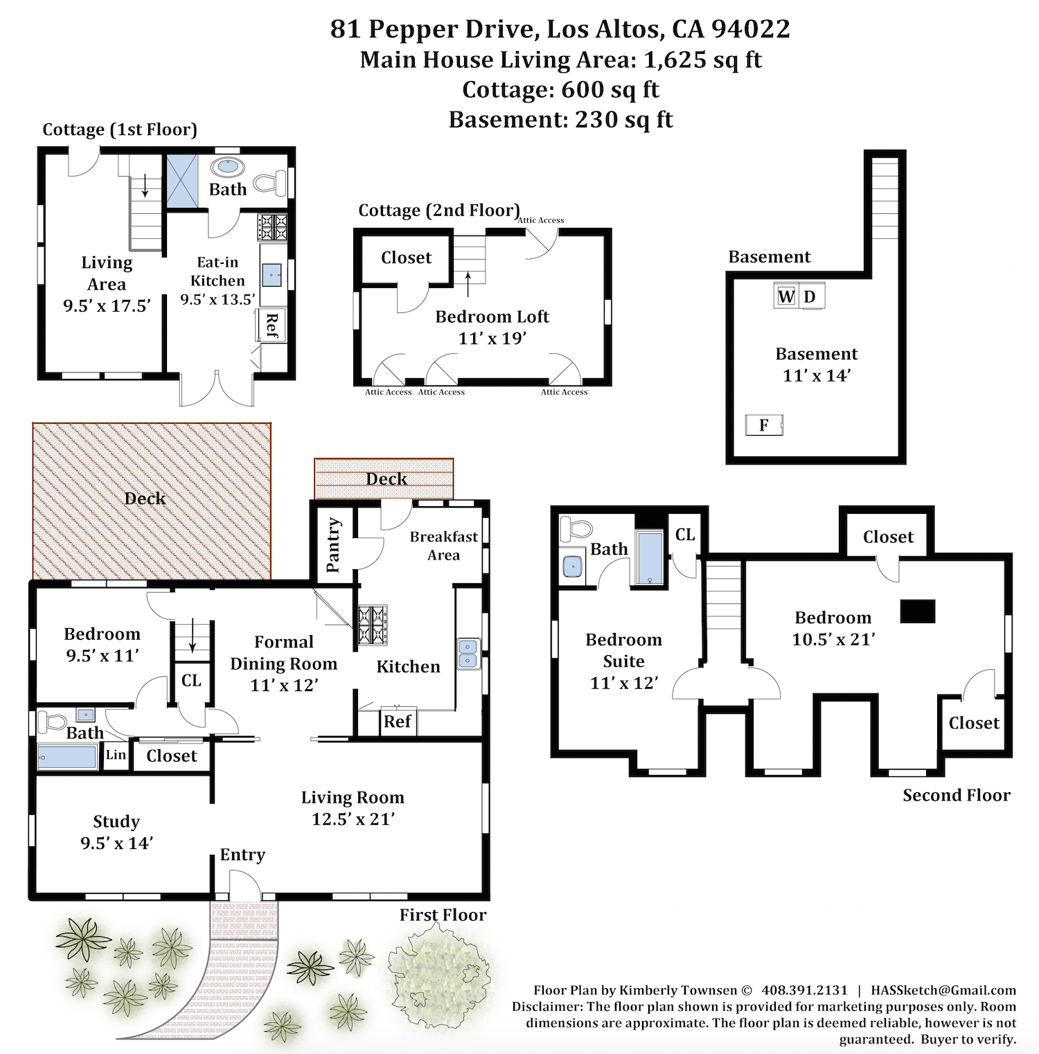 - Main home with 3 bedrooms and 2 bathrooms arranged over two levels