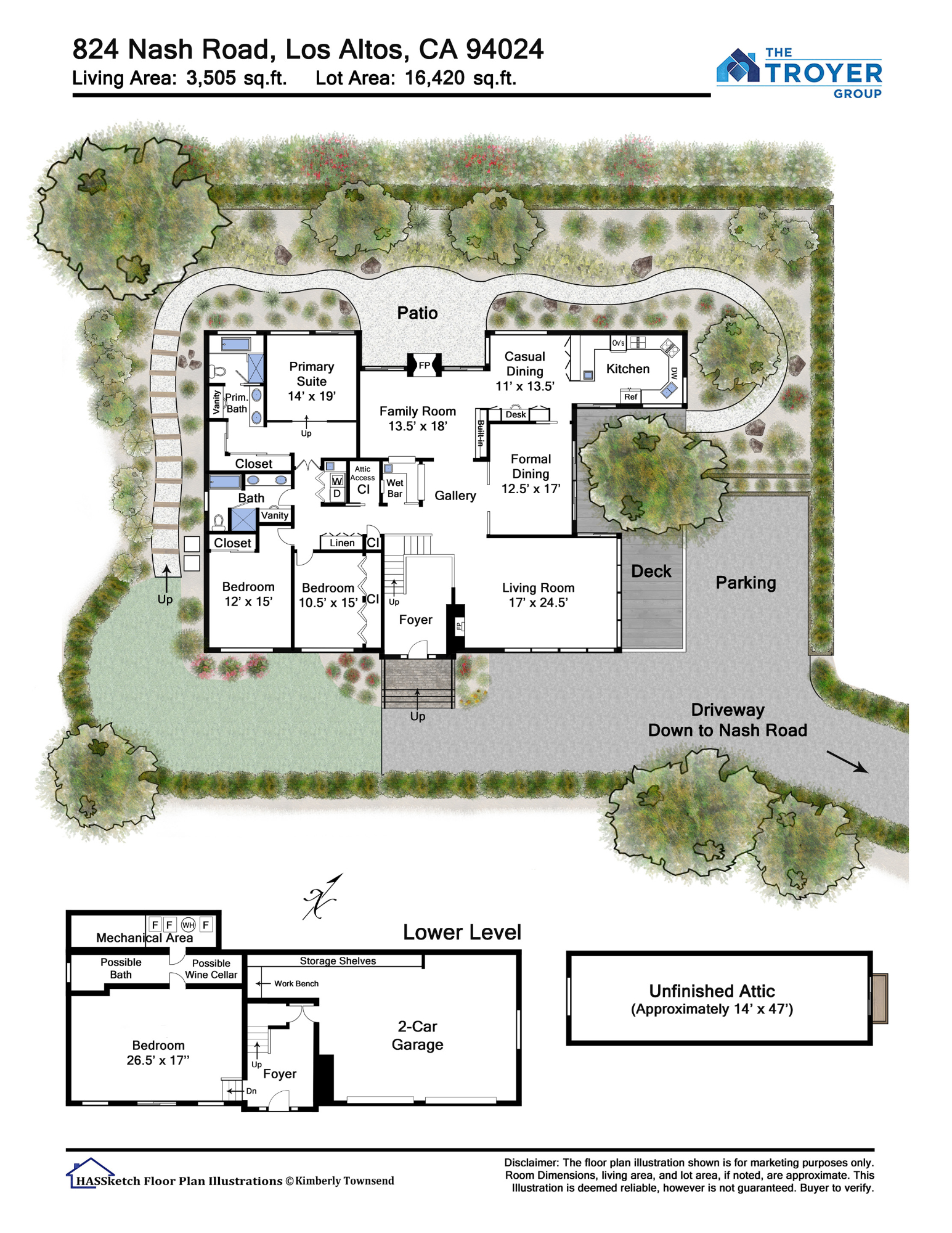 Perfectly placed at the end of a cul-de-sac affording abundant privacy, this spacious home has been expertly upgraded with numerous smart features for ease and efficiency. On the main level, a gallery and bar connects the bedroom wing, living room, dining room, family room, and kitchen. The living room enjoys Bay views, a stone fireplace, two walls of windows, soaring vaulted ceilings, and a door to a large entertaining deck. The family room sits at the back of the home with a striking two-way fireplace, and direct access to the kitchen for effortless entertaining and family living. Three bedrooms including the palatial primary suite sit on one end of the home for privacy. The incredibly spacious fourth bedroom has front yard views and a large closet or possible ensuite bath. Potential to finish the ~658 sq ft (buyer to verify) attic for creative use. Pathways lead around the entire home connecting mature gardens and patios. The privacy and tranquility of the hills, steps to downtown!