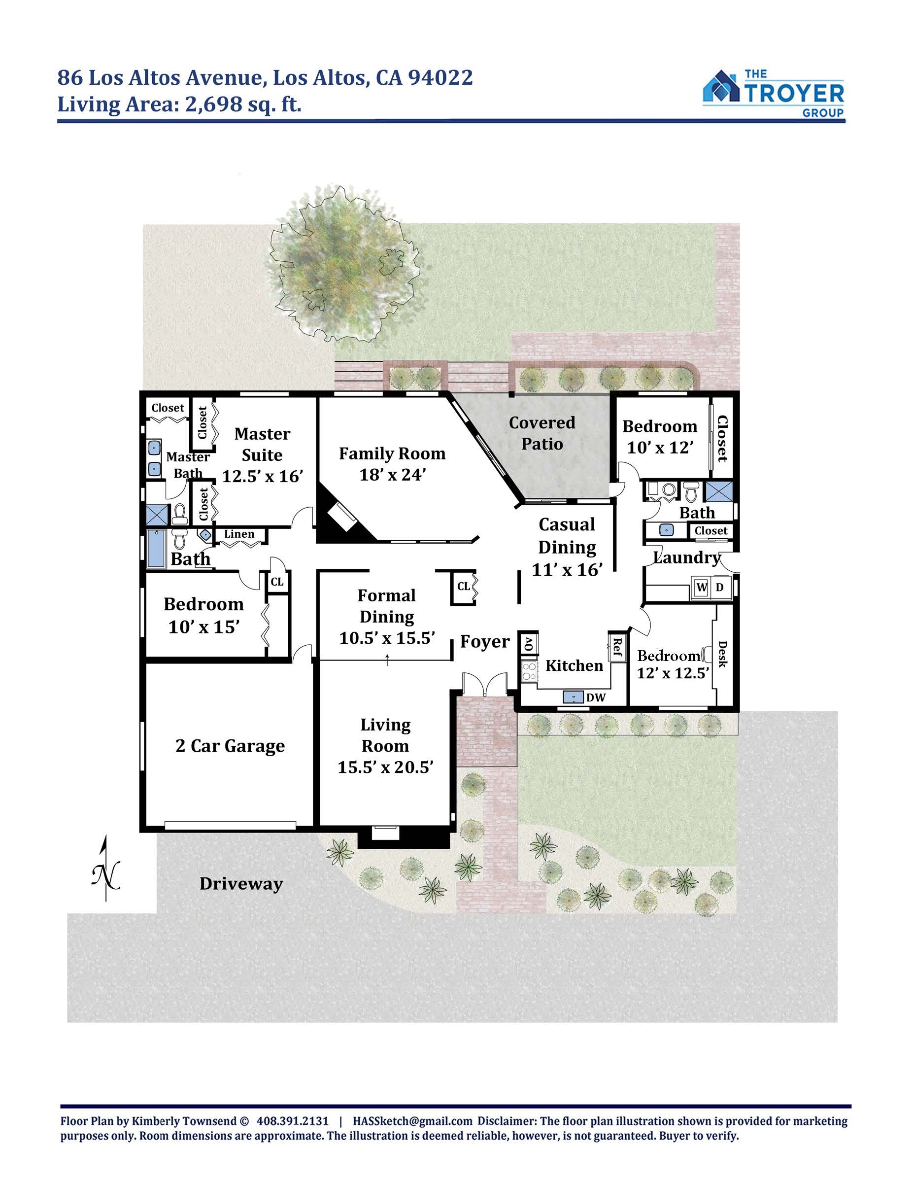 - Approximately 2,698 square feet (buyer to verify)