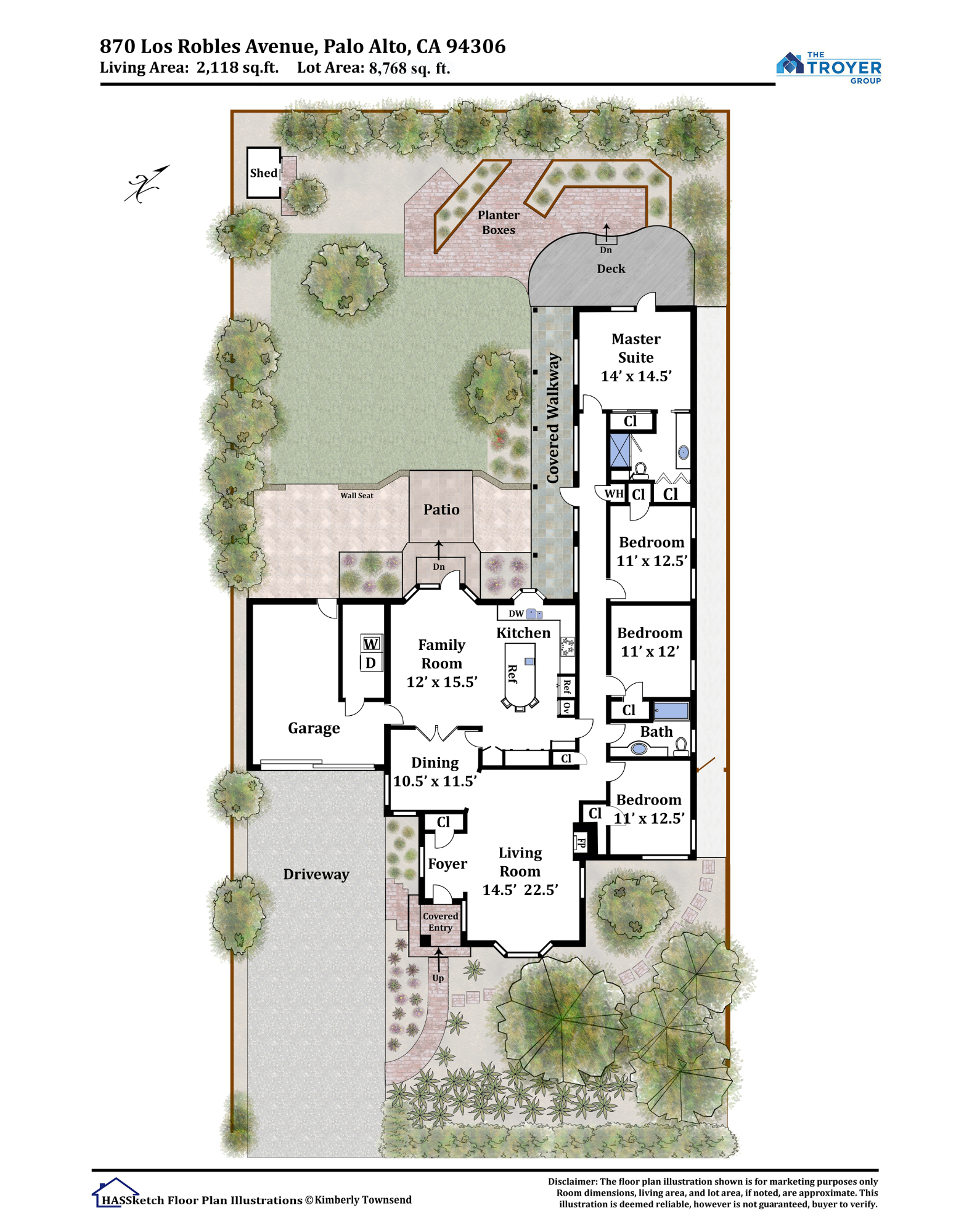 Set well behind tall privacy hedges, you’ll find a quiet, wonderfully designed and updated home with gorgeous wood accents, spacious entertaining spaces, and quiet bedrooms. Enter into the bright living room highlighted by beamed ceilings, move through the entertainers formal dining room, you find yourself in the comfortable family room and gourmet kitchen with views of the rear yard. At the front of the home there is a light-filled bedroom ideal for a home office, and down the bedroom wing there are three additional bedrooms including the sanctuary that is the master suite. Thoughtfully-designed living spaces, surrounded by pristine outdoor spaces laced with mature shade and productive fruit trees. The rear yard features an expansive Saltillo tile patio, slate-tiled walkway, lush level lawn, raised garden beds, and an elevated wood deck. All of this, with an ideal Barron Park location near Barron Park Elementary, local parks, tech employers, shopping, dining, and commute routes.