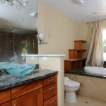 We decided to focus on the largest issues, the kitchen and bathroom areas. In the kitchen we refinished the flooring, fixed appliances, repaired cracks, patched a leak under the wet bar, and painted the entire room. In the bathrooms, we replaced light fixtures, updated shower heads and handles, replaced all hardware, industrial cleaned, painted and fixed any and all cracks in the tile. After the main concerns were taken care of, we then switched our focus to creating a cohesive color palette throughout the home, and bringing in our stager to specify colors and stage the home.